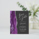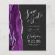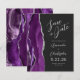Le bord gauche de cette élégante carte moderne d'étape à franchir pour le mariage présente une bordure d'agate aquarelle violette rehaussée de faux strass argentés. Le texte personnalisable combine des polices script gris argent et sans empattement sur un fond noir ardoise. Le verso présente un motif assorti d'agate violette et argentée.