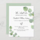Un arrière - plan blanc décoré d'eucalyptus, de sprigs. Personnalisez et votre nom et les détails de la cérémonie. Retour : arrière - plan vert.