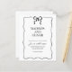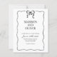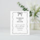 Design feature a simple black and white design with a cute hand drawn wavy border and a small black bow at the top. Using a clean classic font and handwritten calligraphy script. It looks elegant but also a little playful.