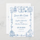 Illustrations à main lunaire Doodles French Style Wedding Enregistrer la date Invitation