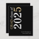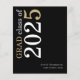 Un rapport qualité-prix BUDGET alternative sur une taille plus petite 4,5 x 5,6" semi-brillant poids 110lbs, qui est d'une épaisseur similaire à une carte postale (cependant ne convient pas à l'utilisation comme carte postale.) VEUILLEZ NOTER qu'il y a UN par feuille. Budget White Gold Text 2025 Black Graduation Faire-part. Un design typographique moderne et élégant pour annoncer la nouvelle de votre diplômé, avec une grande typographie stylisée pivotée et à gauche en haut en blanc et or sur un arrière - plan noir classique. Personnalisez facilement le reste du texte. y compris votre message au verso