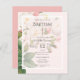 Une belle invitation Baptême avec de jolies roses blanches d'aquarelle à l'envers rose vif. Prêt pour une personnalisation facile.