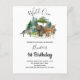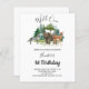 Wild One, fête d'anniversaire sur le thème des bois. Un arrière - plan blanc avec des animaux de la forêt et de la forêt de couleur de l'eau, loup, ours et cerfs. Personnalisez et ajoutez un nom et des détails du parti.