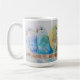 Budgies Trois Branche assise Aquarelle Bleu, avec un nom entièrement personnalisable. Une magnifique aquarelle design amusant. Conçu à partir de mes aquarelles originales, que j'ai peint dans mon jardin fleuri.