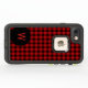 Joli LifeProof FRISÉ® iPhone 7 coque avec un motif plaid de buffle rouge et noir, sur le devant. Un cercle de texte noir, dans le coin inférieur gauche, a un monogramme d'une lettre rouge prêt à être personnalisé. Choisissez le style et le type de coque que vous voulez avant de commander.