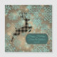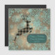 Un buffle brun plaid renne sautant dans une mer de flocons de neige turquoises bleus sur un fond marron créant des imaginaires sifflants noël, y compris une bannière turquoise bleue où vous pouvez personnaliser votre carte.