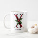 Buffalo noir et rouge Plaid X Monogram Xmas Cafee Mug avec une mignonne lettre X initiale avec un motif plaid de buffle et un élément d'aquarelle mistletoe. Le modèle de nom personnalisé sous le monogramme X est dans une police de calligraphie manuscrite tourbillonnant avec des fioritures. Offrez une tasse de Noël personnalisée et attentionnée en cadeau de vacances d'hiver ou en rembourrage. Pour une autre lettre de monogramme, consultez la section "Autres produits de cette collection" ci-dessous.