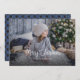 Cartes de Noël personnalisées de buffle bleu neigeux avec une neige trop et un titre de police de script sur une photo. Personnalisez facilement ces cartes de Noël bleu neige avec votre image et votre nom de famille.