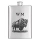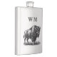C'est un bel art de bison américain sur une fiole en acier inoxydable. Mettez votre propre monogramme personnalisé au sommet. Vous pouvez modifier le nombre de lettres, la police et la couleur. Il est vraiment magnifique sur cette fiole argentée. La fiole de haute qualité sera dernière pendant des années. Commandez dès aujourd'hui !