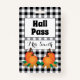 Joli badge de passe de chute. Il a un motif à plaid Buffalo noir et blanc et deux citrouilles. Personnalisez-le. Choisissez le type de hall pass que vous voulez (hall pass, infirmière pass, bibliothèque pass, bureau pass, etc) et le nom de l'enseignant. Idéal pour le primaire, le collège ou le lycée.Ce badge est également disponible avec un motif Buffalo orange et blanc. © ArianeC Illustrations-Tous droits réservés