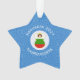 Un ange habillé dans le drapeau de la Bulgarie sur un ornement en forme d'étoile avec un thème Hanoukka. L'ange bulgare vole dans un cercle blanc de carrés grossiers. L'arrière - plan est un carré bleu et grossier. Conçu pour le décor Hanoukka pour les familles de religions multiples. Ajoutez un nom à personnaliser. Ajoutez l'année de personnaliser. Vous pouvez également ajouter votre propre texte à votre guise.