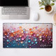 Élevez votre espace de travail avec ce tapis de bureau saisissant doté d'un design abstrait 3D à bulles de haute qualité. La composition est remplie de sphères scintillantes et translucides dans une palette vibrante de couleurs arc-en-ciel : pourpre améthyste, orange coucher de soleil et bleu océan profond. Des accents délicats en forme de branches dorées se faufilent entre les bulles semblables à du verre, créant une profondeur incroyable et une énergie artistique moderne. Un nom personnalisé est affiché avec élégance dans une police de caractères cursive blanche dans le coin inférieur, faisant de ce tapis un ajout professionnel et unique à votre bureau. Ce tapis durable et de grand format offre une surface lisse pour votre souris et votre clavier tout en protégeant votre bureau. Parfait pour ceux qui veulent une pièce maîtresse audacieuse et créative qui apporte une touche de couleur haute