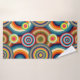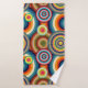 Ce kit de serviettes est doté d'un linge rose, d'une serviette mauve et d'une serviette de bain aux couleurs des années 1970 avec le modèle Bauhaus de différents groupes de cercles concentriques.