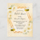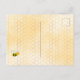 Elégante et amusante invitation à la douche nuptiale. Jaune, arrière - plan blanc avec un motif de nid d'abeille. Avec un cadre géométrique en faux or. Décoré d'un jaune clair, de fleurs de fleurs tropicales crème, d'hibiscus et d'abeilles jolies. Avec le texte : Fête des mariées et le nom de la mariée à être sur le devant écrit avec un script de style manuscrit moderne. Lettres noires. Dos : motif jaune peigne blanche et une abeille. Conseil : Si vous ne voulez pas qu'il ressemble à une carte postale, cliquez sur customiser, allez à l'arrière et retirez le séparateur et le timbre postal.