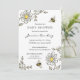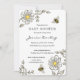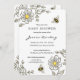 Jolie invitation à la douche bébé à motifs floraux jaunes et blancs. Parfait pour les averses d'abeilles et les baby showers jaunes au printemps ou en été. Unique baby shower floral dessiné à la main invitations avec abeilles.