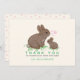 Merci à vos invités pour leurs cadeaux réfléchis avec ces adorables lapins lapins lapins nus de coton et de maman peinte à la main assis dans un morceau de trèfle tout en émettant des coeurs roses flottants entre eux ! Les mots "Merci" et votre nom personnalisé sont en texte vert pour correspondre au patch de trèfle. Sur le dos de la carte se trouve un mignon motif de coeur rose. Montré ici avec un arrière - plan couleur ivoire que vous pouvez facilement changer à votre couleur préférée.