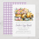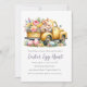 Whimsical Floral Bunny Easter Egg Hunt Invitation - présente un adorable Bunny de Pâques dans un camion vintage jaune rempli de belles fleurs pastel et accentué avec des oeufs de Pâques, magnifiquement décoré pour la saison. Le verso de l'invitation est en vichy. Notre modèle vous permet de personnaliser notre invitation à la chasse aux oeufs de Pâques.