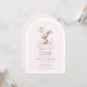 Annoncez le premier anniversaire de votre petit avec élégance et charme en utilisant cette belle invitation à l'arc fleuri. Le design présente un délicat bouquet d'aquarelle de roses roses rousses et marguerites blanches, évoquant un sens de la beauté douce et de la célébration. La forme voûtée unique apporte une touche de sophistication moderne, tandis que l'arrière - plan rose doux vient compléter parfaitement l'agencement floral. Cette invitation est idéale pour créer une atmosphère rêvée et enchanteresse pour le jalon spécial de votre enfant.