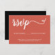 Gérez sans effort vos réponses à vos événements avec notre "Burnt Orange Simple Script RSVP sans envoi de courrier". Cette carte RSVP allie simplicité, élégance et fonctionnalité, ce qui en fait un choix parfait pour la planification d'événements contemporains. La police manuscrite de script tendance aux couleurs orange, noir et blanc brûlé offre un look classique et chic qui convient à tous les thèmes de l'événement. Conçue pour votre commodité, cette carte RSVP est adaptée aux hôtes qui préfèrent recevoir des réponses par courriel ou par téléphone. Il élimine le besoin pour les clients de renvoyer la carte par la poste, ce qui permet d'économiser du temps et des coûts. La carte indique clairement le nombre d'invités et comprend un espace pour vos coordonnées, ce qui simplifie le processus RSVP. Cette version est non seulement rentable, mais aussi respectueuse de l'environnement. Vous pouvez le personnaliser en fonction des besoins spécifiques de votre événement, en vous assurant que tous les détails nécessaires sont inclus. Conseil Pro : Améliorez l'apparence de la carte avec un stylo métallique pour les noms de sièges réservés ou d'autres touches spéciales. Si vous avez besoin d'aide pour customiser ce design parfaitement adapté à votre événement, n'hésitez pas à communiquer avec nous à l'adresse info@lddesignloft.com .