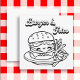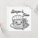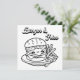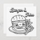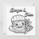 Une carte carré à plat. Un côté est une page de coloriage avec un hamburger et des frites. Le dos est vide pour que vous puissiez garder et colorier pour vous-même ou vous pouvez l'envoyer à un ami et écrire une note sur le dos.