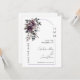 This save the date invitation features a romantic and elegant design. 🌿 In the top left corner, a lush floral arrangement of deep burgundy, white, and sage green blooms adds a touch of natural sophistication. The typography blends graceful cursive with classic serif fonts, creating a refined and celebratory tone.