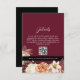 Offrez aux clients tout ce dont ils ont besoin dans une carte élégante. Cette carte de détails mariage bordeaux et noirs présente des illustrations florales romantiques et un code QR scannable qui relie votre site RSVP ou des informations mariages. Parfait pour les amateurs de boho moderne ou les mariages de automne élégants.