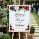 Bienvenue à vos invités dans le style avec notre Burgundy Blush Navy Blue Floral Mariage Sign. Ce panneau époustouflant présente un design floral délicat, dans des tons bordeaux, roux et bleu marine, lui donnant un aspect romantique et intemporel. Pour afficher cette affiche, vous pouvez monter l'affiche sur une planche en mousse ou une planche en bois pour l'afficher sur un chevalet ou accroché sur un mur. Et pour votre commodité, il est également disponible en téléchargement numérique pour l'auto-impression.