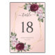 Burgundy Blush Gold Floral Mariage Numéro de table