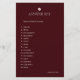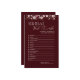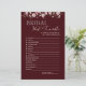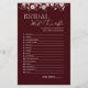 Add elegant fun to your bridal shower with this Bride in Bloom Bridal Word Scramble Game. Featuring a rich burgundy background with soft floral accents, this printable-style card challenges guests to unscramble wedding-related words within a set time. Perfect for bridal showers, engagement parties, and bachelorette celebrations. The game includes 15 wedding-themed words and a matching answer key on the back, making it easy for the host to score. Ideal for modern, floral, and romantic bridal shower themes.