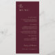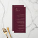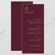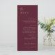 Create a stunning reception table setup with this burgundy elegant minimal wedding menu card. Designed with a rich dark burgundy background and refined typography, this menu adds a luxurious and modern touch to your wedding decor. Perfect for classic, romantic, fall, winter, vineyard, or formal weddings, this stylish menu complements burgundy blush themes and sophisticated table settings. Personalize with your names, wedding date, venue, dinner courses, cocktails, drinks, desserts, and special meal options. Ideal for plated dinners, buffet receptions, rehearsal dinners, bridal showers, and upscale celebrations. The clean minimalist layout makes it easy to read while enhancing your tablescape with timeless elegance. This custom wedding menu is perfect for couples seeking chic stationery that matches invitations, place cards, and signage. Great for printable or professionally printed wedding stationery collections. Impress guests with a beautiful wedding dinner menu that combines luxury style, modern simplicity, and unforgettable reception details for your special day celebration.