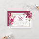 Conçu pour compléter votre thème de mariage élégant, cette carte présente un magnifique mélange de tons bordeaux et d'accents dorés éclatants, créant un look vraiment luxueux et enchanteur. Personnalisez la carte avec les détails de votre événement et invitation vos invités à répondre rapidement. Avec son design captivant et son artisanat de haute qualité, cette carte RSVP laissera une impression durable sur vos invités.