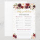 Burgundy floral bébé prédictions et jeu de conseil pour le baby shower, Contactez-moi pour les articles correspondants ou pour la personnalisation, Roses Blush ©