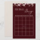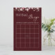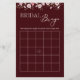 Bride in bloom bridal shower. Add fun and elegance to the bridal shower with this burgundy floral Bridal Bingo game card. Designed with rich wine tones, soft blush florals, and a modern script font, this printable bridal shower game is perfect for classy, romantic, and luxury celebrations. Guests mark off gifts as they’re opened—first to bingo wins! Ideal for bridal showers, engagement parties, bachelorette brunches, and fall or winter weddings. Easy to print and play, this timeless bingo card pairs beautifully with matching bridal shower games and décor.