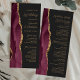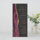 Le bord gauche de cet élégant programme de mariage moderne est doté d'une bordure en aquarelle rouge bordeaux et bordée d'une parties scintillant en faux or. Le texte personnalisable combine un script de calligraphie couleur or et des polices sans serif sur un arrière - plan sombre.