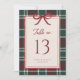 Burgundy Green Plaid Christmas Bow Table Numbers