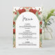 Faites l'apéro de votre réception de mariage avec cet élégant menu d'inspiration Art Nouveau, composé de roses bordeaux, d'une douce végétation sauge et d'une arche dorée ornée. Ce design floral vintage ajoute une touche romantique aux mariages d'automne et d'hiver et est entièrement modifiable en ligne, ce qui facilite la personnalisation de vos choix de dîner. Idéal pour des réceptions formelles, des dîners en platine ou des buffets, il se marie magnifiquement avec des pièces assorties de la suite complète pour un look mariage cohésif et intemporel.