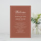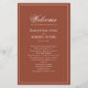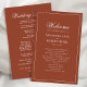 Améliorez votre journée spéciale avec ces programmes de cérémonie de mariage élégants, avec un thème de couleur bordeaux rouille et un script de calligraphie classique. Cette disposition double face à une feuille offre un style simple et sophistiqué, affichant magnifiquement votre ordre de service et la liste de la fête de mariée. La typographie design et tendance vient compléter l'esthétique formelle et traditionnelle, tandis que le design élégant et élégant apporte une touche raffinée. Parfait pour un mariage chic et intemporel sans effort
