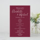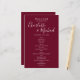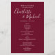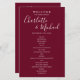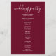 Élégant programme d'accueil mariage de script de signature bordeaux avec des noms de style signature. Personnalisez-vous en ajoutant les détails de votre jour de mariage dans un élégant lettrage blanc moderne. Conçu par Thisisnotme©