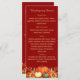 Burgundy colored background decorated with orange fall flowers and pumpkins. Personalize and add your Thanksgiving menu on the front.