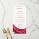 Inspired by 2026’s rich, burgundy color trends, this design features flowing abstract drapery in deep burgundy hues. The layered movement echoes the year’s drapery-inspired aesthetic, reminiscent of elegant gathered fabric backdrops and statement reception installations. A clean, modern layout keeps menu details easy to read while the luxurious artwork adds depth, motion, and high-impact sophistication to your tablescape.