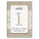 Burlap Lace Rustique Mariage Numéro de table Carte