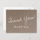 Burlap merci carte postale pour le mariage country chic. Texture vintage avec nom de mariée et mariée.