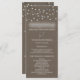 Burlap Star String Lights Rustic Wedding Programs - programme à thème ou mariage campagnard rustique propose un imprimé brun burlap arrière - plan avec une guirlande étoilée argentée et des lampes à cordes. Le dos des programmes de cérémonie comporte également un design assorti. Si vous appuyez sur le bouton PERSONNALISER IT, vous pourrez modifier le style de police, la couleur, la taille, déplacer du texte autour d'autres options. Il vous donnera plus d'options si vous en avez besoin.