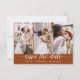 QR Code - Paysage moderne et élégant Horizontal Trois (3) Photo Enregistrer la date Magnet Mariage avec typographie manuscrite. L'aimant d'invitation de date inclut la typographie de script et le design chic et simple auquel vous pouvez ajouter votre photo de fiançailles customisée à.