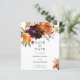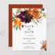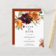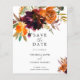 Mariage boho rustique à budget floral Enregistrer la Date avec un bouquet floral aquarelle peint avec des tons chauds et terreux d'orange brûlée, de terre cuite et de bordeaux profond avec un peu de verdure. Cet élégant Save the Date avec les nuances riches de l'automne est idéal pour un mariage de automne.