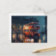 Une nuit dans la carte postale londonienne avec un bus rouge de style rétro sur une nuit sombre dans la ville. Carte postale art de style post impressionnisme