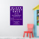 Black Friday Sale. Attract more customers. Convince more customers to buy your products or like your services. Offer promo. Offer Sale. Offer discount. Customizable poster that you can use as marketing material to attract more customers. Customize it and use it to advertise your business or to promote your brand name. Contents are Black Friday Sale texts, percent discount that you will offer, your business logo, business or company name, address, phone number, e-mail and website or social media page. Poster designs are pink and white texts on purple background and on portrait rectangle shape. Please check the appearance after uploading logo and typing texts. If the appearance is pleasing to you, you can place your order now. If you need to resize and move the logo and texts to fit on this poster or on other sizes and styles that you will choose, please change in the design tool. You can also make other changes according to your preference in the design tool such as changing the poster background color, font color and font style. Wishing you more sales!