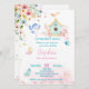 Garden Invitation Floral Butterflies Birds and Flowers Pink First Birthday
