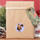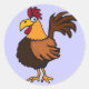 Un coq de dessin animé avec une attitude fait de grands autocollants ronds.