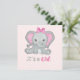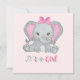 Petites annonces de naissance pour bébé, photo "It’s a Girl". C'est tellement mignon avec l'aquarelle éléphant et bébé fille rose doux.